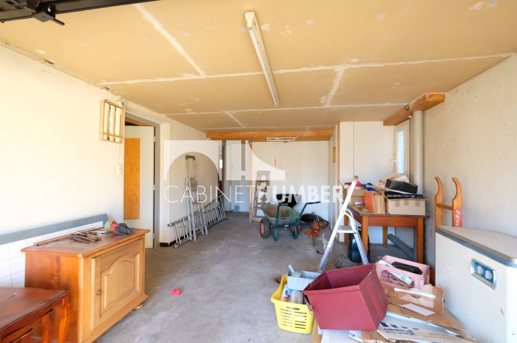 La maison offre au rez-de-chaussée, un garage, un espace atelier - chaufferie, une chambre (hauteur 2.15m). A l'étage, hall desservant une cuisine, une pièce de vie, deux chambres, une salle d'eau et un WC séparé.