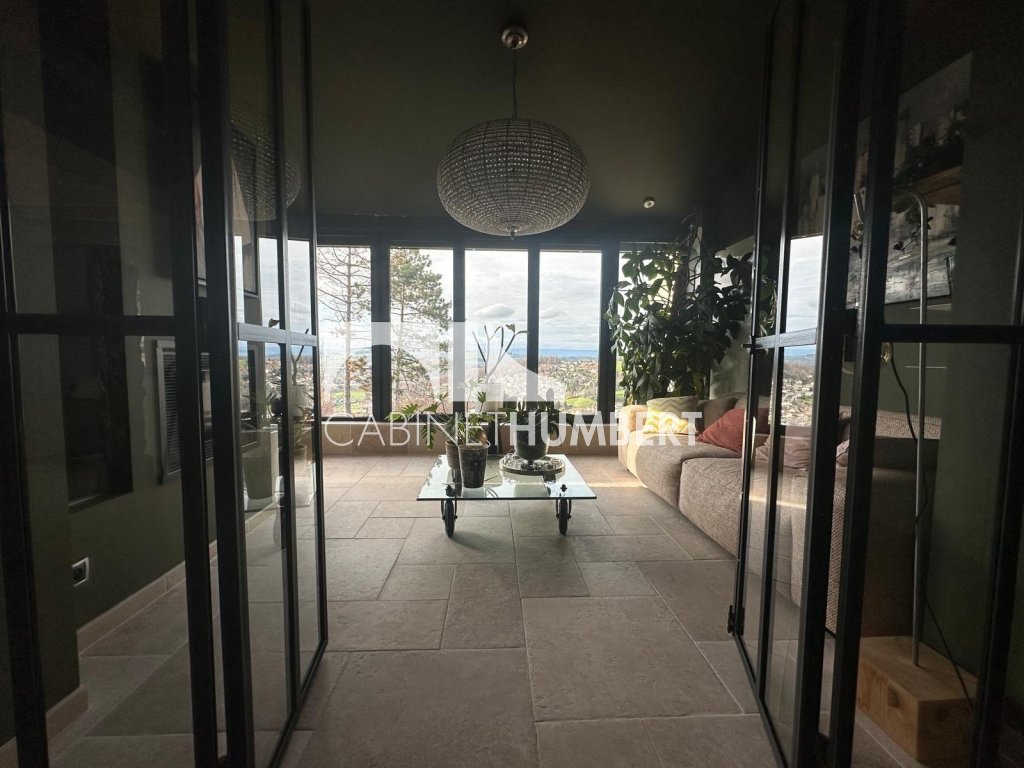 Maison rénovée d'environ 144m2 habitables, offrant une grande pièce de vie de plain-pied donnant sur une terrasse. Grande cuisine dinatoire, 2 chambres, une salle d'eau. Sur le même niveau, une pièce cocooning avec cheminée et très belle vue sur la plaine. Au rez-de-chaussée, 2 chambres dont une avec sa salle d'eau.