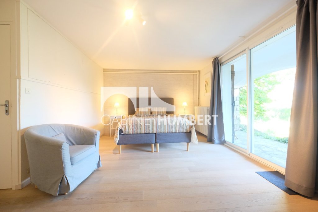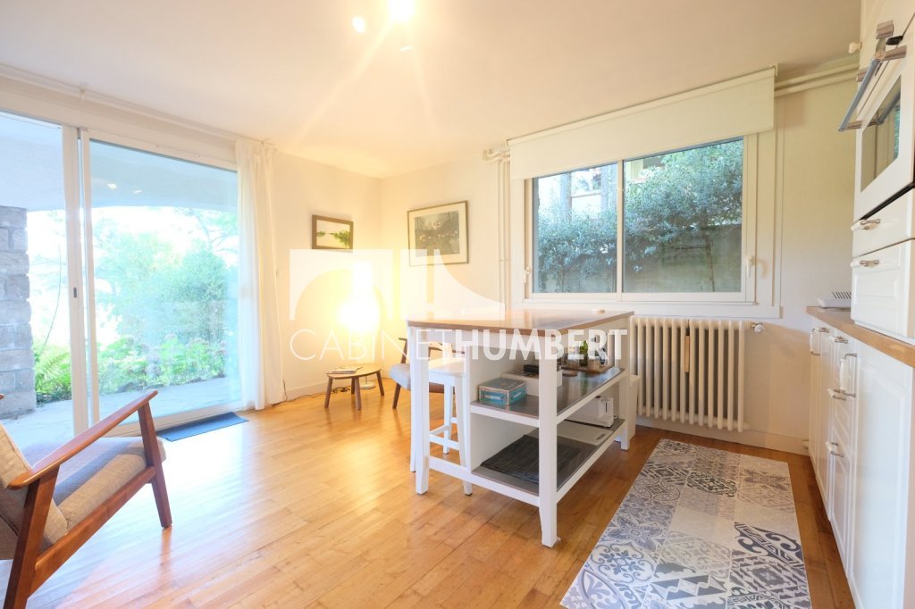 Au niveau jardin, un logement indépendant : pièce de vie avec cuisine ouverte, grande chambre, salle de bain et wc, lingerie, atelier, chaufferie, garage avec porte automatique, cave.