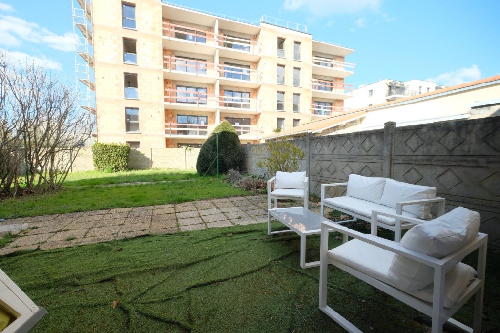 Une cour devant la maison de 27m2 et un jardin à l'arrière d'environ 85m2.