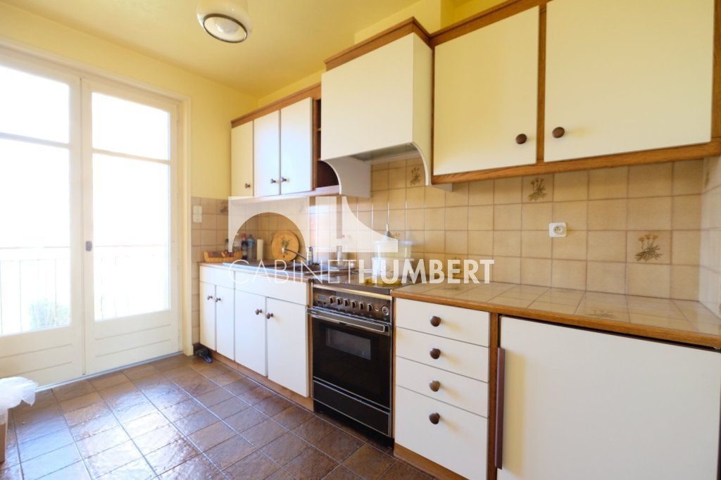 A l'étage, 77m2 habitables répartis ainsi : un salon avec salle à manger donnant sur un balcon, une cuisine fermée avec balcon, une chambre et une salle de bain.