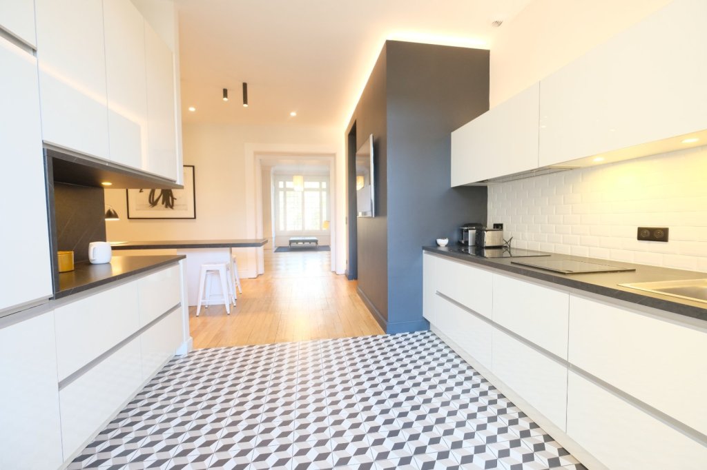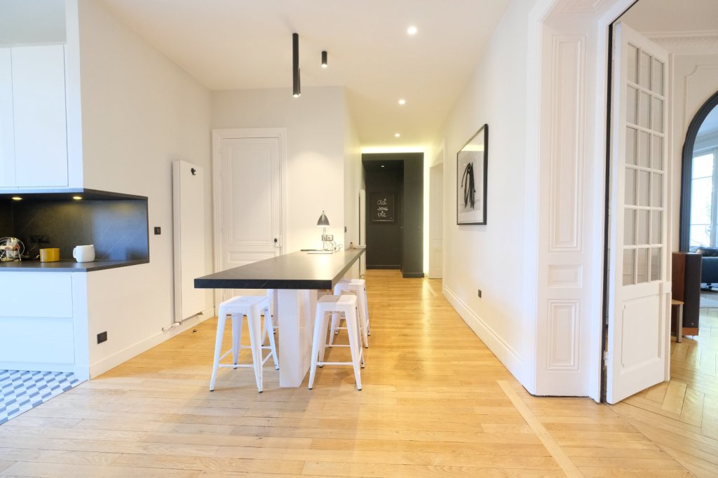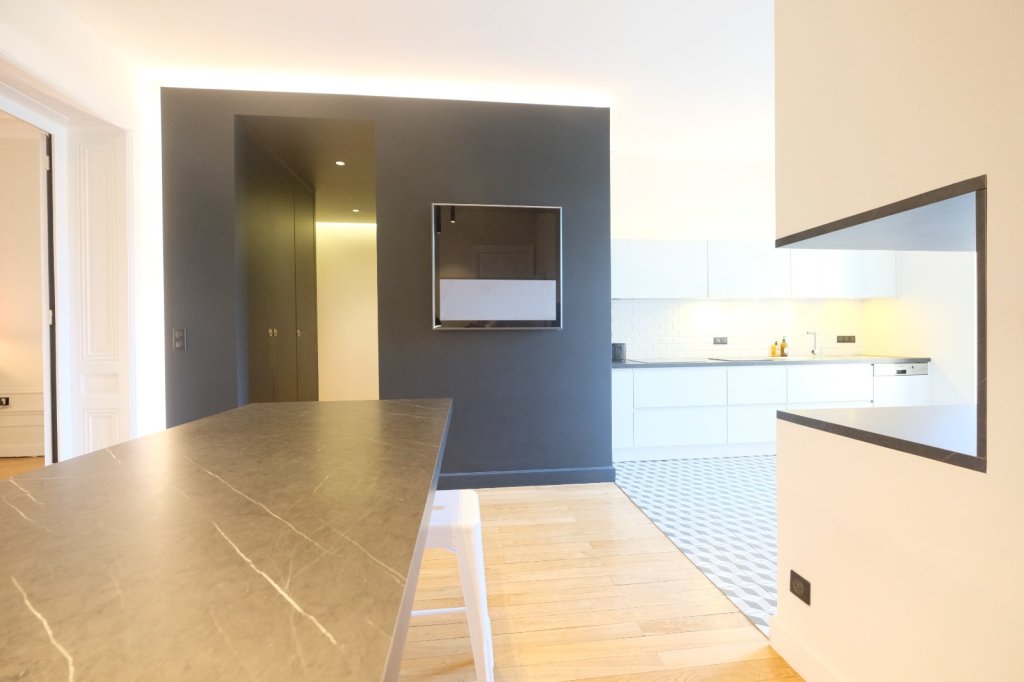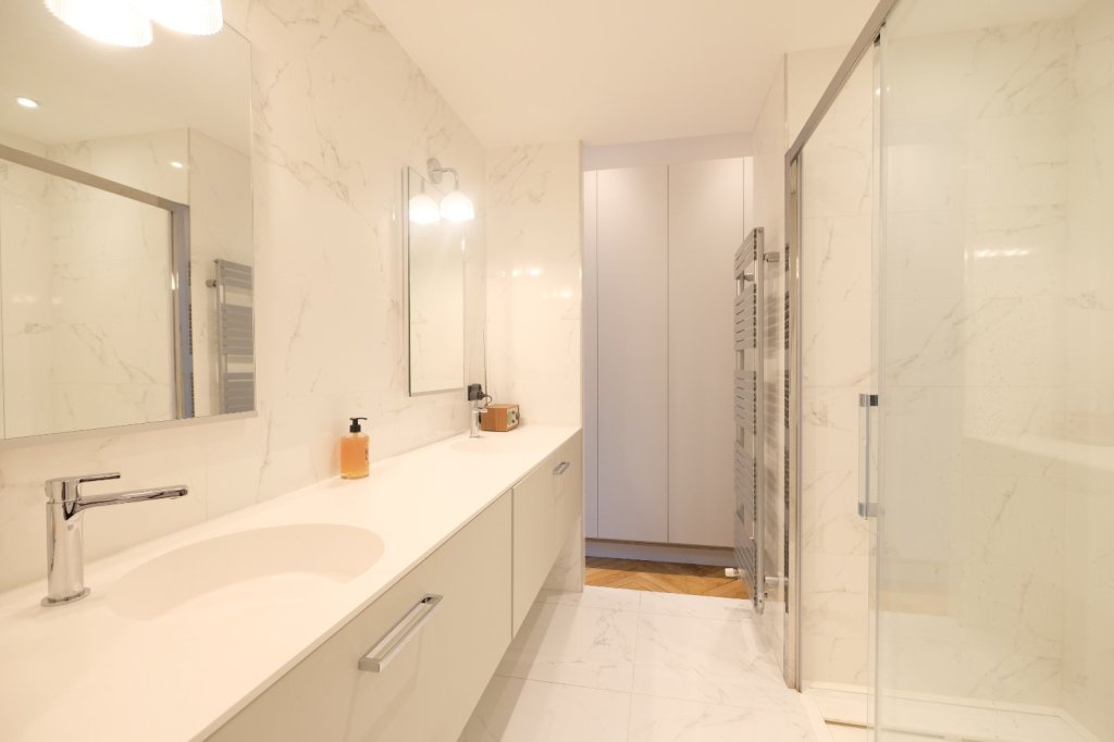 L'appartement dispose de deux pièces de vie de 60m2, baignées de lumière et d 'une grande cuisine dinatoire ouverte. Coté nuit : une suite parentale, une chambre de 23m2 avec un espace bureau et un espace nuit, une chambre de 18m2 et une salle de bain avec baignoire et douche.